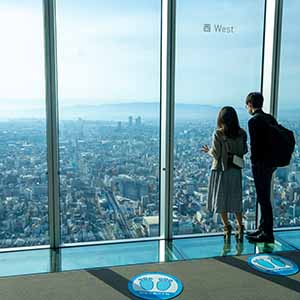 あべのハルカスから眺める桜色の大阪と大阪城公園