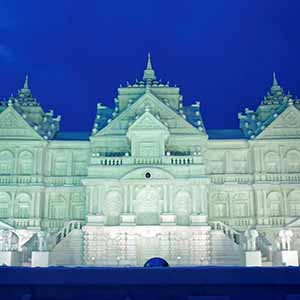 京都駅南口【9:20発】--伊丹空港--新千歳空港--千歳・支笏湖氷濤まつり(国内有数の透明度を誇る支笏湖の水を吹きかけて凍らせた氷像)--札幌2泊【SAPPORO STREAM HOTEL=夕食後、各自でライトアップされた「さっぽろ雪まつり」へ】
