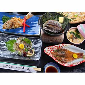 (あわびざんまいのどぐろえび、わかさぎゅうしゃぶのちゅうしょくとよしのせがわだむ)